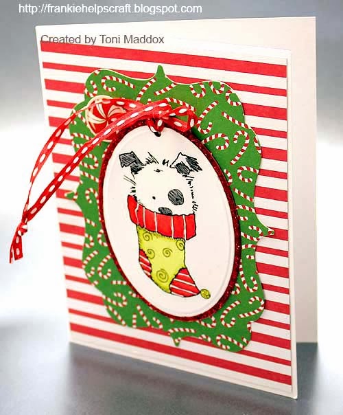 I'm entering this in Christmas Stampin' All Year Round #42 Stripes, Designed to Color #23 Wintertime/Christmas, Penny Black and More Anything Goes, Weekly Christmas Card Challenge #51 Bling, Addicted to Stamps & More #72 Make Your Mark and Allsorts #233 Make a Gift.