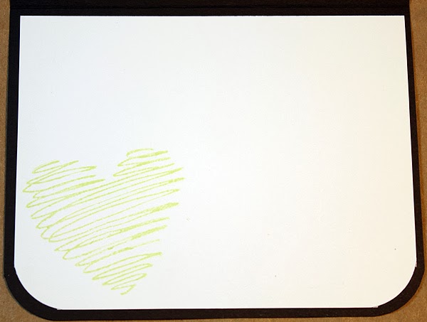 The Details: Inkadinkado Hearts and Village Lifestyle, Christmas Crafts Christmas 2013, PTI white card stock, black cardstock from old stash, Memento Tuxedo Black, Pistachio, and Bamboo Leaves, Spectrum Noir DR5, Glossy Accents, star brad, Martha Stewart corner rounder