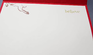 The Details: PTI white card stock, Bazzil red card stock, mystery stickers from my kid sis, Fiskars Holiday Frolic sentiment, Fiskars All That Glitters reindeer, Memento Rich Cocoa, Cuttlebug embossing folder