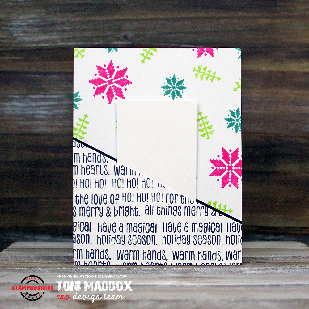 I am so excited that my friend, Kimberly Wiener, has released a stamp set with Stamplorations and I get to play with it! Woo hoo! And play I did! The set has a variety of images that work really well together. You could easily make a tag or two or twelve, or make full-size cards as I did. Love!