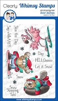 I stamped the Whimsy Winter Sports image using Memento Tuxedo Black and colored it up with Copics. That image cracks me up! Actually they all do. So cute!