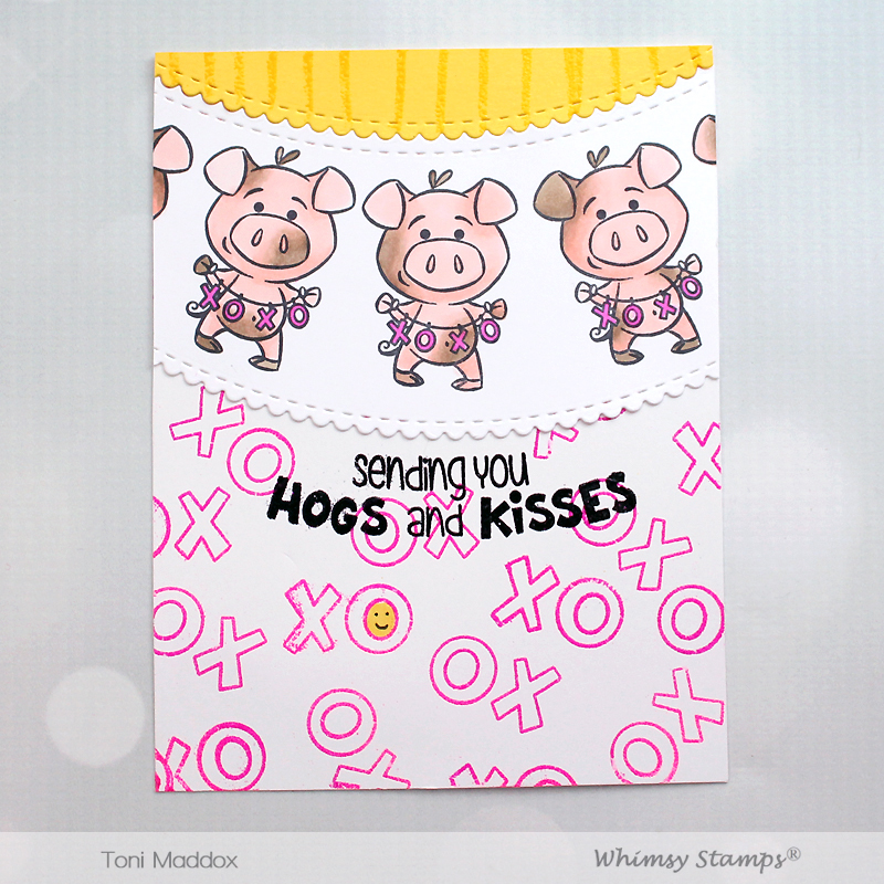 I love the vibrancy of the colors! I've used the Wow! Primary Fuschia Fusion along with the XO stamp from Whimsy Hogs and Kisses to create the card background.