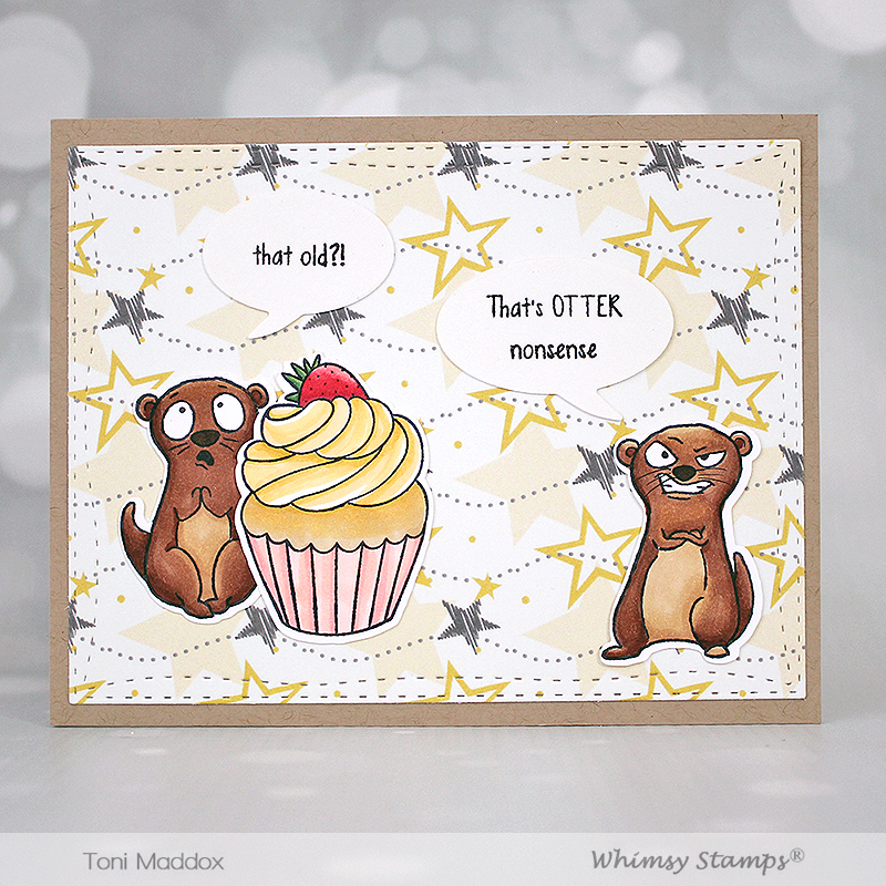 I colored the otters and cupcake using Copics and the star paper for inspiration.  I was worried that the otters wouldn't show up well given their neutral colors but was happily proven wrong.